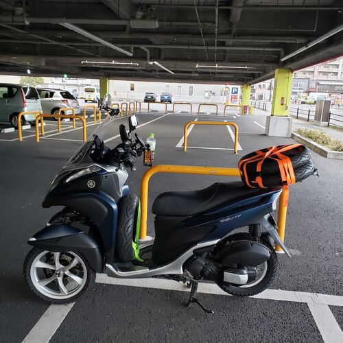 原付バイク(トリシティ125)のタイヤをバイク屋で交換してもらった後に、交換したタイヤをどうやって持って帰るかという話。